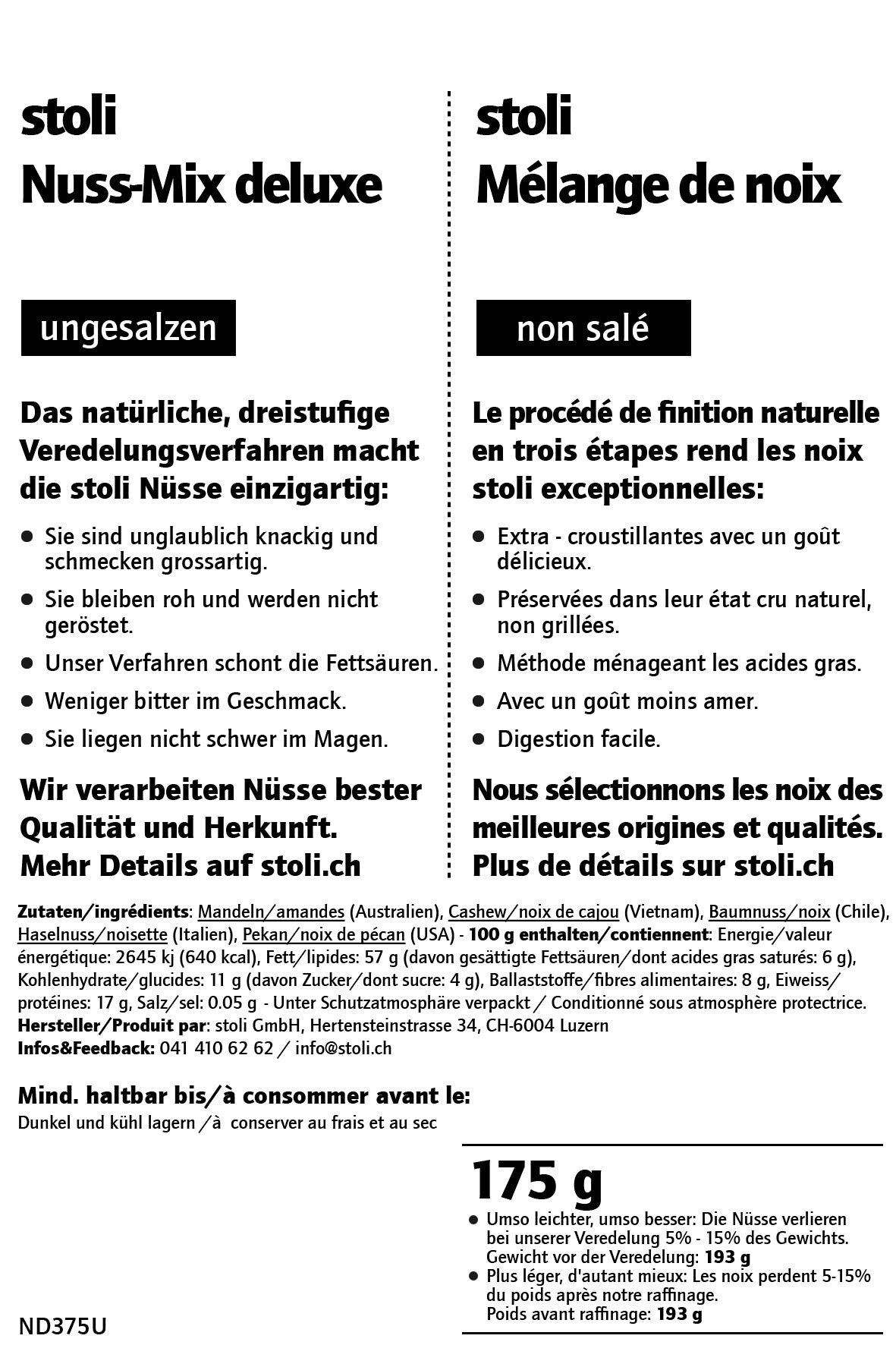 Nuss-Mix Deluxe ungesalzen, stoli, 175g