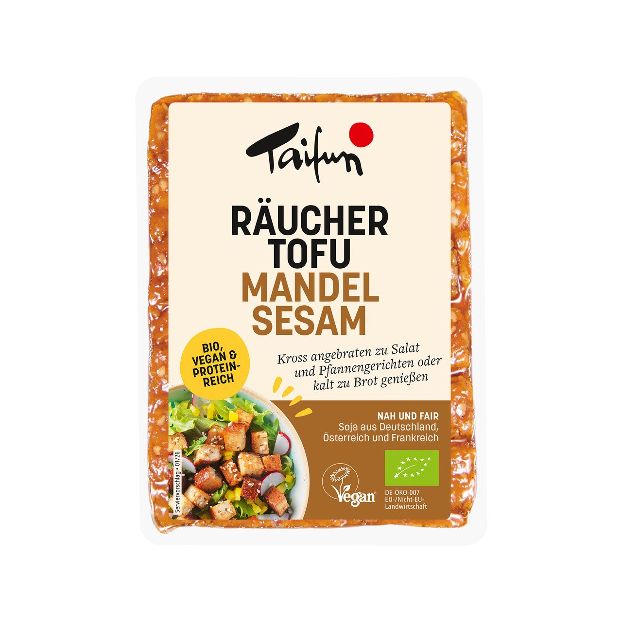 Der Räuchertofu von Taifun ist eine beliebte Tofu-Spezialität mit feiner Rauchnote. Ob kalt geschnitten, angebraten oder als Zutat in warmen Gerichten – er überzeugt durch seinen aromatischen Geschmack und seine feste Konsistenz. Ideal für herzhafte vegane und vegetarische Rezepte.