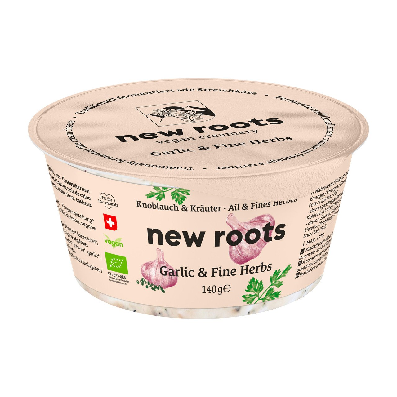 Pflanzliche Alternative zu Streichkäse mit Meerrettich Hergestellt in der Schweiz aus biologischen Cashewkernen. Fermentiert nach dem traditionellen Verfahren Schweizer Käsehersteller.